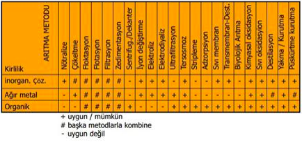 Kimyasal arıtma metotları ile aşağıdaki giderimler sağlanabilir;